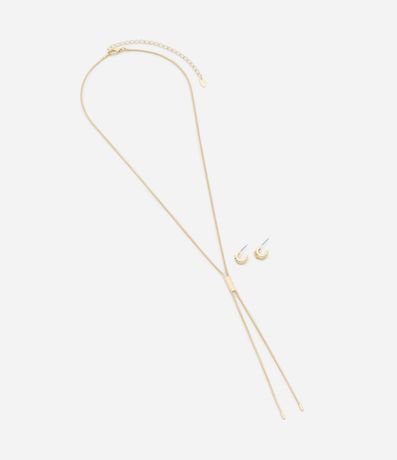 Conjunto de Colar e Gravata Rabo de Rato com Brinco Argola e Strass