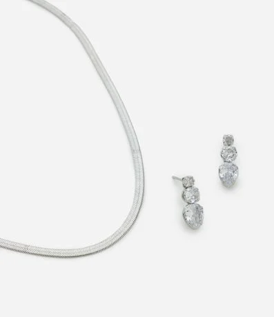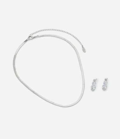 Conjunto de Colar Fita Italiana e Brincos de Zircônia