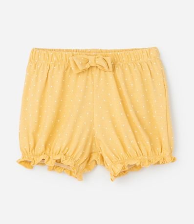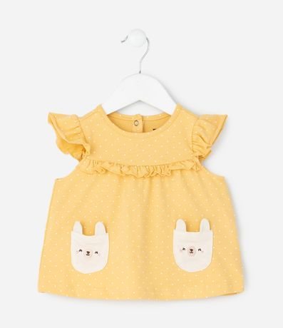 Ref: Conjunto infantil composto por bata e short, confeccionado em algodão certificado BCI e meia malha respirável. A bata tem gola redonda, mangas curtas com babados, bolsos com bordado de coelho e botões de pressão nas costas. O short possui cós elástico e laço decorativo, oferecendo conforto e praticidade.