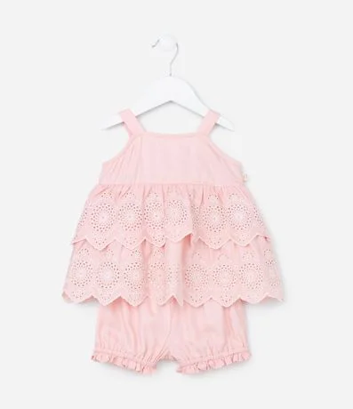 Conjunto Infantil com Babados e Bordado - Tam 0 a 18 meses