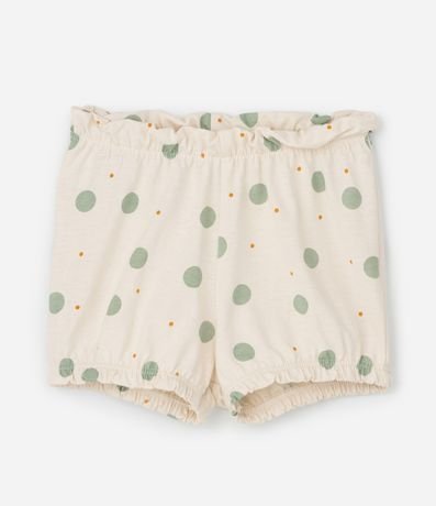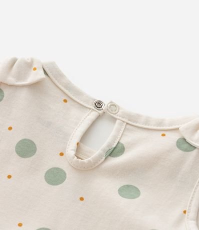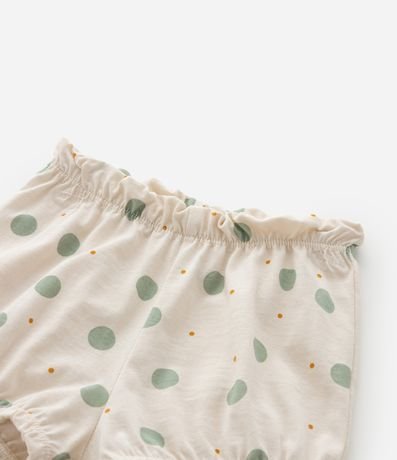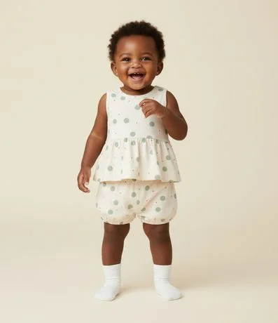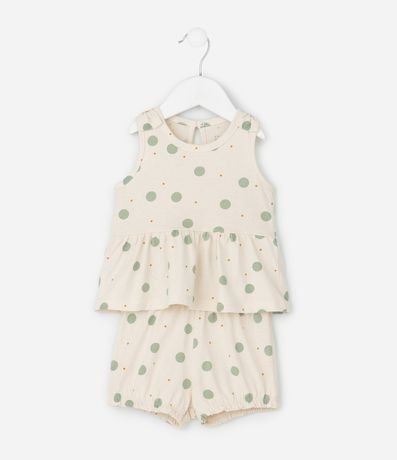 Ref: Conjunto infantil confeccionado em meia malha de algodão certificado BCI, composto por blusa sem manga com babados nos ombros, laços aplicados e abertura traseira por botão. Acompanha short com cós elástico, estampa fullprint coordenada e barras franzidas.