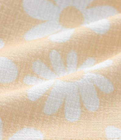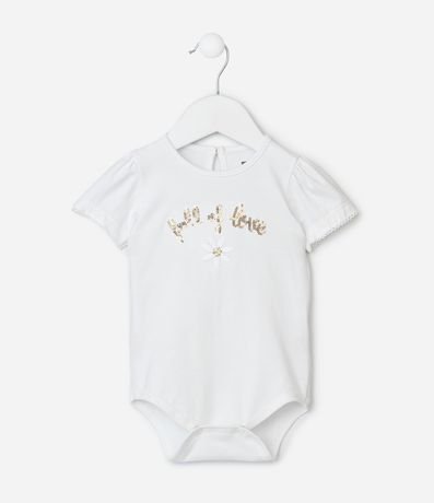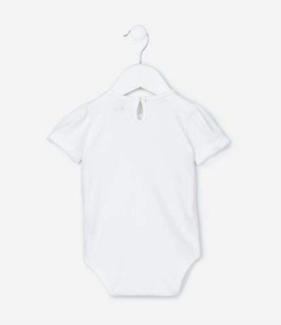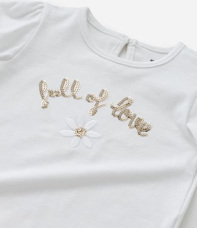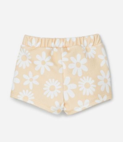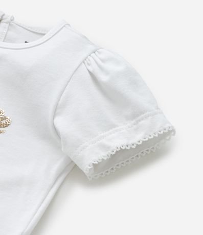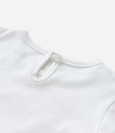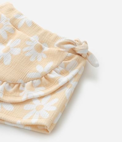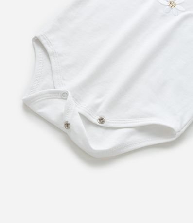 Ref: Conjunto com duas peças para meninas: body de cotton com mangas curtas, detalhe de picueta, bordado de paetê e fechamento na gola e entre as perninhas; e short saia com nózinho lateral e estampa de flores.