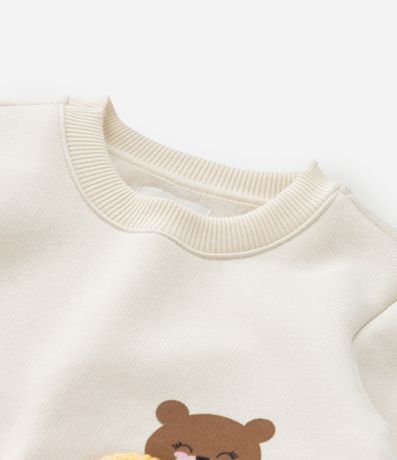 Ref: Conjunto infantil confeccionado em algodão certificado mais sustentável. Composto de casaco fechado, gola redonda, manga longa, bordado frontal de urso e florzinha e calça legging com elástico no cós.