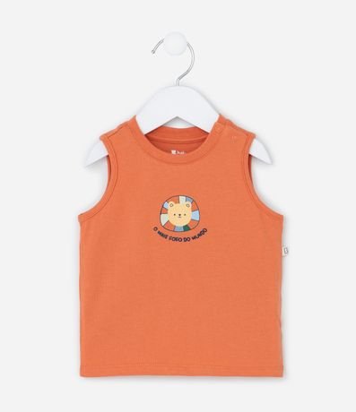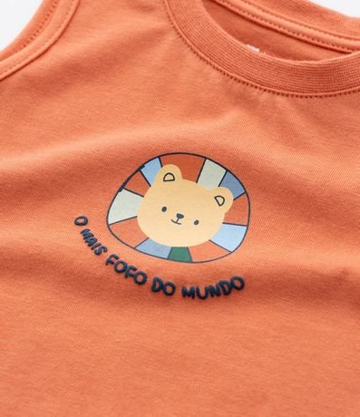 Ref: Conjuntinho infantil confeccionada em poliéster e algodão. Com regatinha de gola redonda e lettering "O mais fofo do mundo" e bermuda de amarração no cós e estampa de bichinhos.