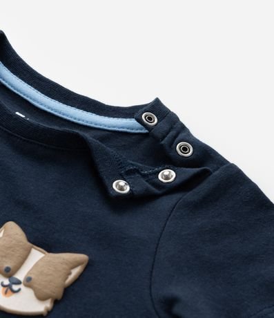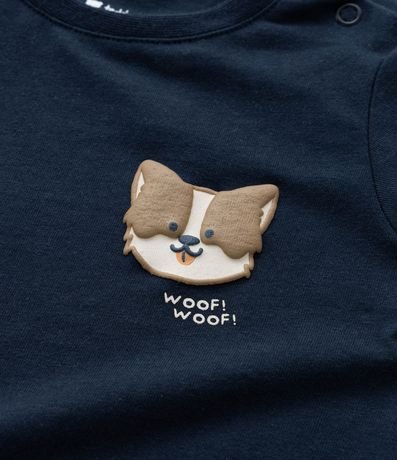 Ref: Conjunto infantil confeccionado com material mais sustentável. Possui camiseta de mangas curtas, estampa de cachorrinho e bermuda de cós elástico, com amarração e listras.