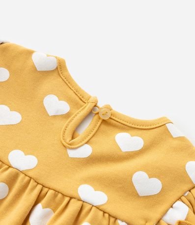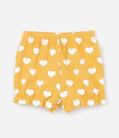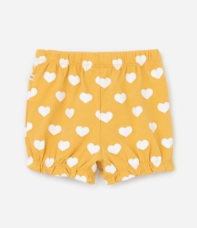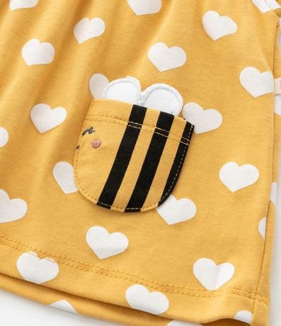 Ref: Conjunto infantil confeccionado em algodão mais sustentável através de boas práticas ambientais, no modelo curto. Possui blusa com gola redonda, manga curta e bolsinho com abelhinhas. Shortinho com cós elástico e barra elásticos. Ambos com estampa de corações.