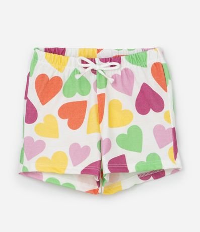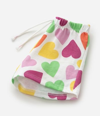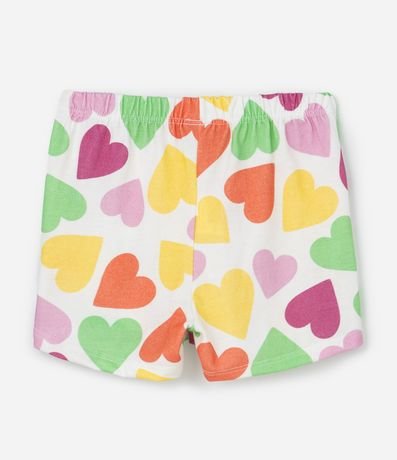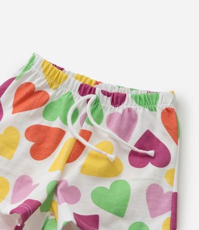 Ref: Conjuntinho infantil confeccionado em algodão mais sustentável através de boas práticas ambientais, no modelo curto. Composto de blusa, gola redonda, com abotoamento, manga curta e estampa localizada de coração, já a bermuda possui cós elástico, com cordão e estampa de corações.