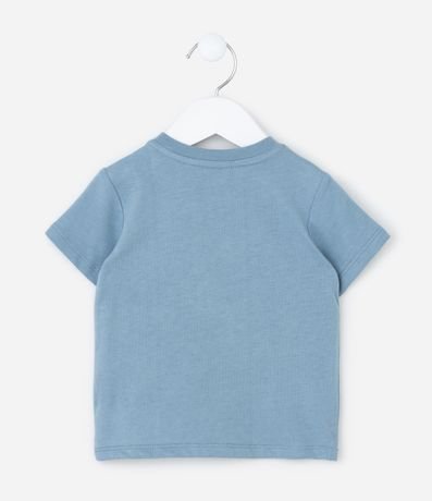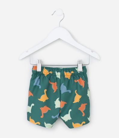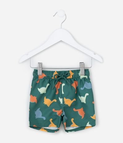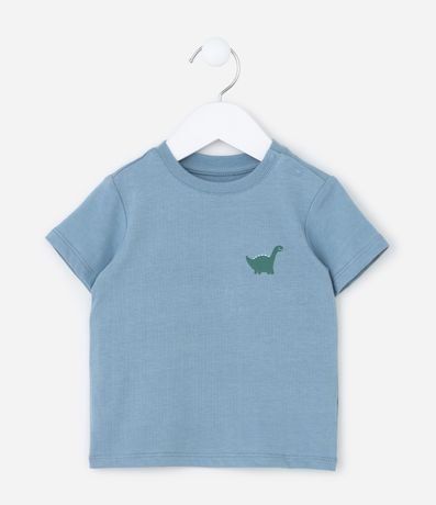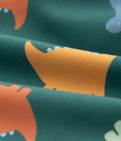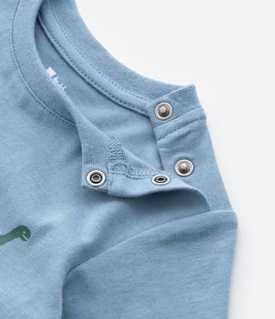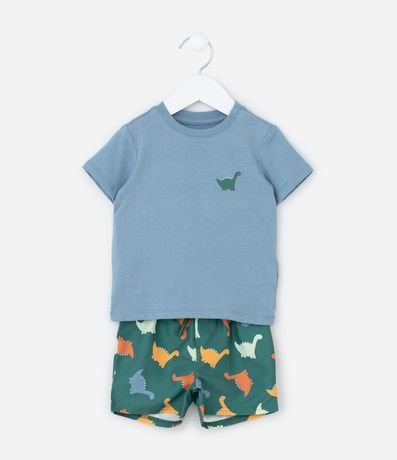 Ref: Conjuntinho infantil para bebês composto por camiseta e bermuda. Camiseta com mangas curtas em algodão e bermudinha com amarração no cós, ambos com estampa de dinossauros. Item feito com material e processo mais sustentável.
