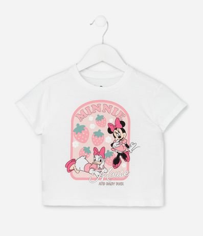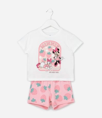 Ref: Conjunto infantil confeccionado em algodão mais sustentável, no modelo curto. Possui blusa regular, com gola redonda, manga curta, estampa e lettering Minnie e shortinho runner, com cós elástico e estampa de moranguinhos.