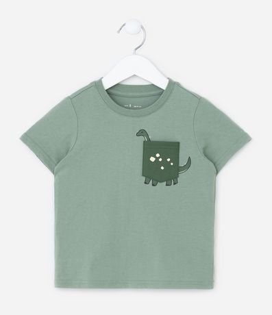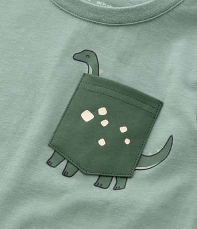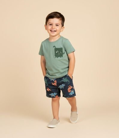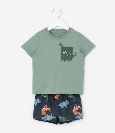 Ref: Conjunto infantil confeccionado em algodão mais sustentável e composto por duas peças: bermuda e camiseta. A camiseta possui gola redonda, manga curta, bolsinho e a bermuda conta com cós elástico, ambos com estampa de dinossauros.