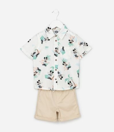 Ref: Conjunto infantil com camisa e bermuda. Camisa com manga curta, bolsinho no peito e linda estampa com o Mickey no clima de praia. Bermuda infantil com cintura elástica, cordinha para amarração, bolsinhos e barra dobradinha.