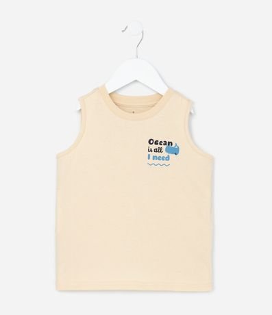 Ref: Conjuntinho infantil confeccionado em algodão mais sustentável através de boas práticas ambientais, no modelo curto. Composto de camiseta, gola redonda e sem mangas. Bermuda, com cós elástico e cordão. Ambos com estampa de fundo do mar.
