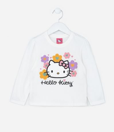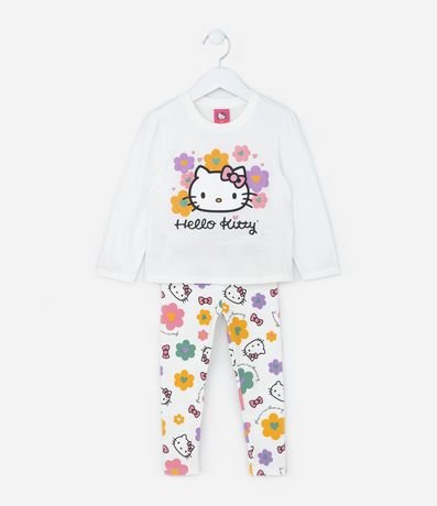 Ref: Conjunto infantil confeccionado em algodão mais sustentável, composto de blusa a calça. A blusinha possui mangas longas, já a calça possui cós elástico. Ambas com estampa da Hello Kitty e florzinhas.