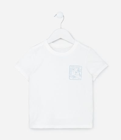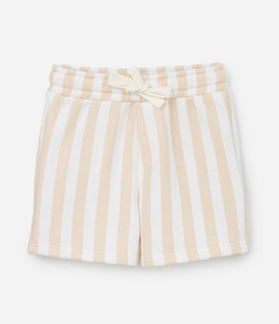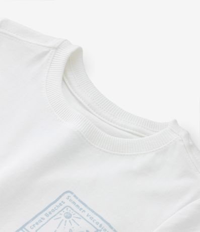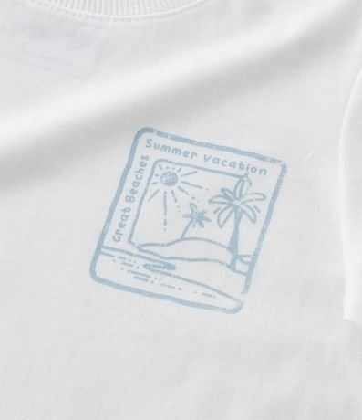 Ref: Conjuntinho infantil composto de camiseta com gola redonda, mangas curtas e estampa praia, bermuda com amarração no cós e estampa listrada.