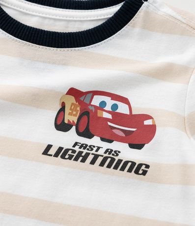 Ref: Conjunto infantil confeccionado em algodão certificado BCI e boas práticas ambientais. Contém camiseta com gola redonda, manga curta e estampa McQueen Baby, além de bermuda com cós ajustável por amarração. Conforto e praticidade para looks divertidos.