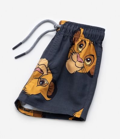 Conjuntinho infantil composto por 01 camiseta com mangas curtas e uma bermudinha de banho com cós elástico e amarração. Possuem estampa do filme Rei Leão.