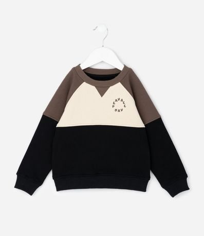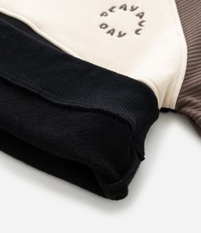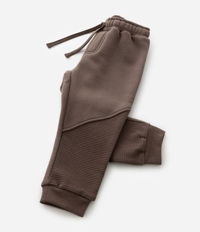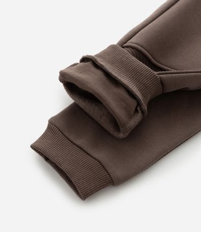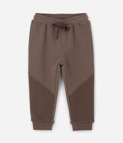 Ref: Conjunto infantil confeccionado em moletom com felpa de algodão certificado BCI. O casaco tem gola redonda, mangas longas, recortes contrastantes com detalhe em ottoman e lettering no peito. A calça jogger possui cós elástico com cordão e punhos canelados.
