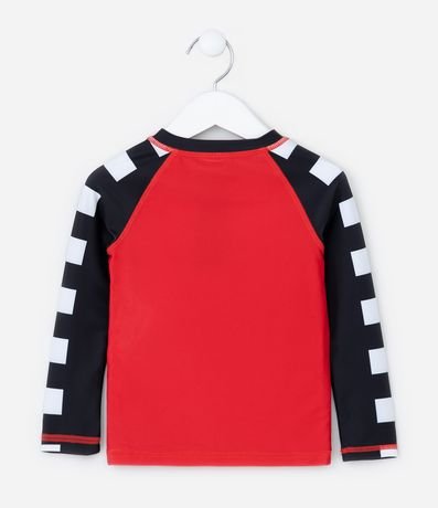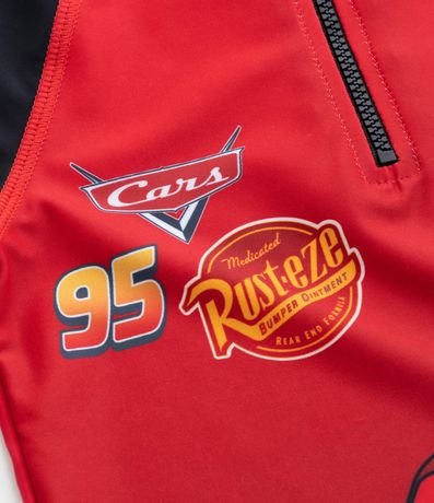 Ref: Conjunto de praia infantil, confeccionada em microfibra, com proteção UV e composto por 03 peças: camiseta, sunga e chapéu. Camiseta possui zíper na gola com estampa de Carros e sunga e chapéu possuem estampa Carros.