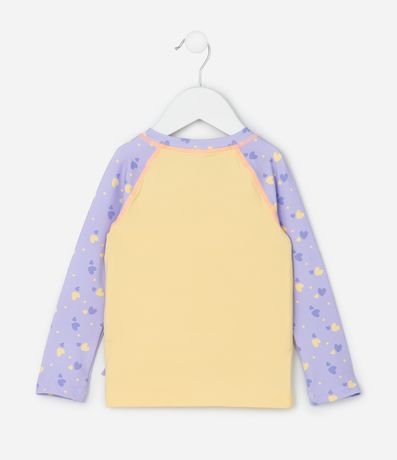 Ref: Conjunto de praia infantil, confeccionada em poliamida, com proteção UV e composto por 03 peças: camiseta, calcinha e chapéu. Camiseta possui estampa de unicórnio, calcinha e chapéu possuem estampa de coração.
