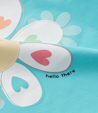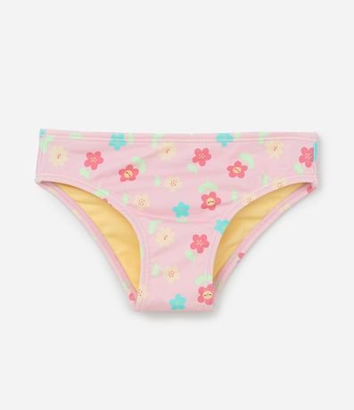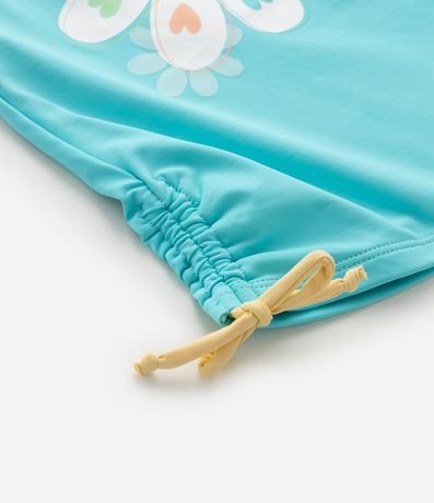 Ref: Conjunto de praia infantil, confeccionada em microfibra, com proteção UV e composto por 02 peças: camiseta e calcinha. Camiseta possui tiras laterais para ajuste, ambas as peças com estampa de florzinhas.