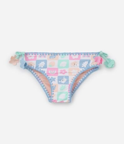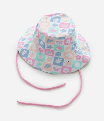 Conjunto de praia infantil, confeccionada em microfibra, com proteção UV e composto por 03 peças: blusa, calcinha e chapéu. Camiseta, calcinha e chapéu possuem estampa tropical e chapéu possui florzinhas 3D.