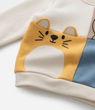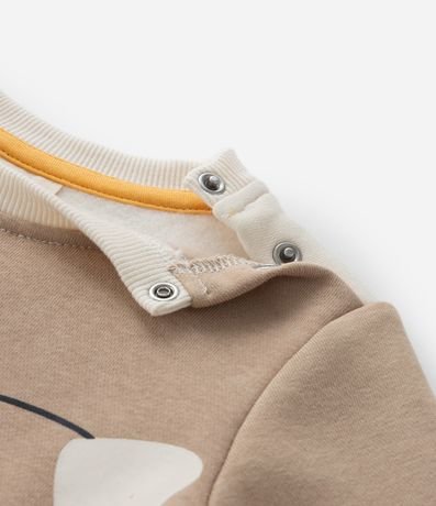 Ref: Conjunto infantil confeccionado em moletom com forro quentinho. Possui casaco fechado e calça, com recortes e estampa de carinha de bichinhos. O item é feito a partir de boas práticas ambientais e algodão certificado bci.