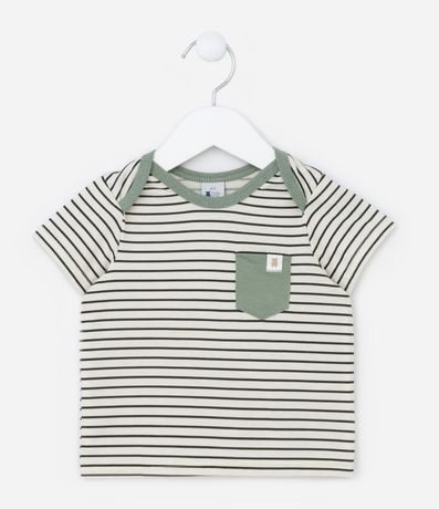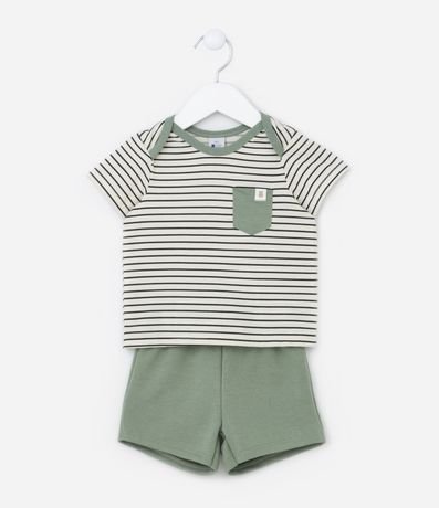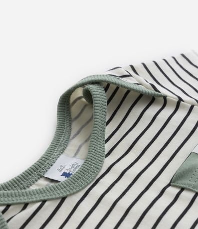 Conjunto Infantil em Algodão com Bolsinho e Estampa de Listras - Tam 0 a 18 meses
