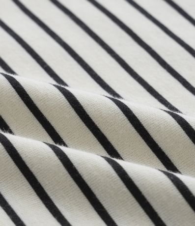 Conjunto infantil confeccionado em algodão, composto de camiseta e bermuda. Camiseta com gola americana, manga curta, bolsinho, estampa de listras e bermuda com cós regulável por cordão.
