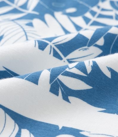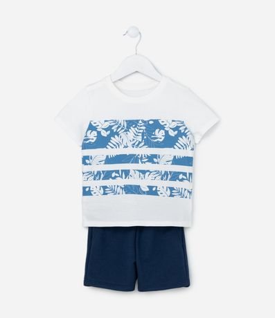 Conjunto curto infantil com estampa de folhagens e bermudinha com cós regulável.