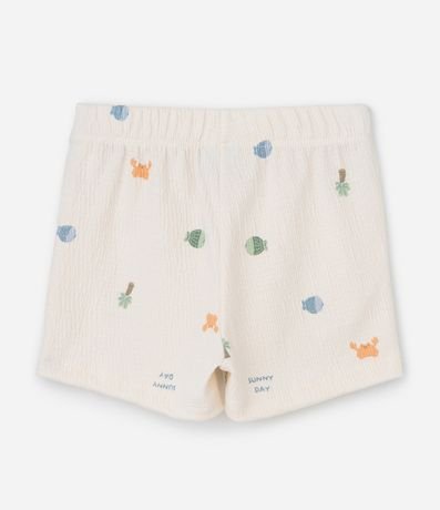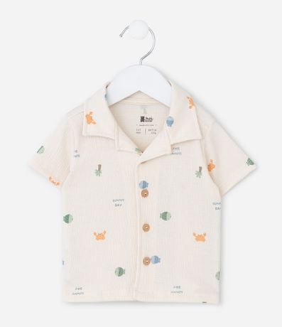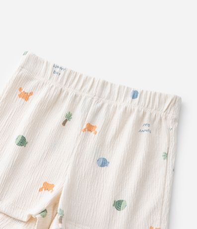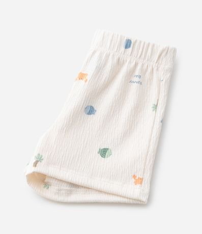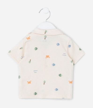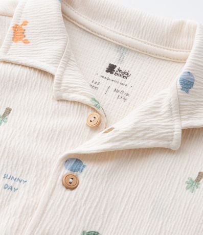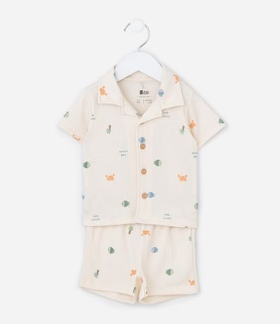 Conjunto infantil confeccionado em anarruga mais sustentável, no modelo curto. Composto por 02 peças: Camisa com gola lapela, manga curta, abotoamento frontal e bermuda com cós elástico. Ambos com estampa fundo do mar e texturizados.