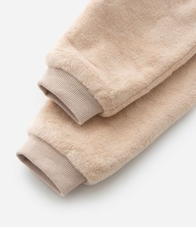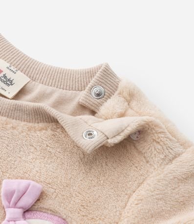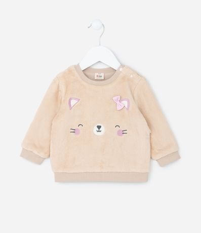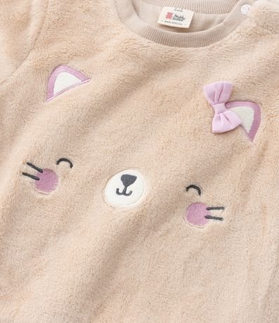 Ref: Conjunto quentinho para bebês com duas peças de fleece, com estampada de carinha de gatinha: uma casaco com golinha redonda e mangas longas, e uma calça com punhos ajustados.