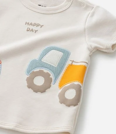 Ref: Conjunto infantil composto por dias peças: camiseta estampada de carrinho e caminhão e calça canelada listrada.