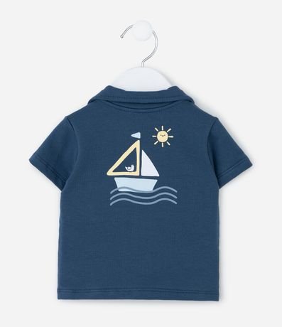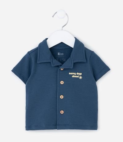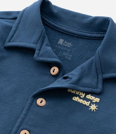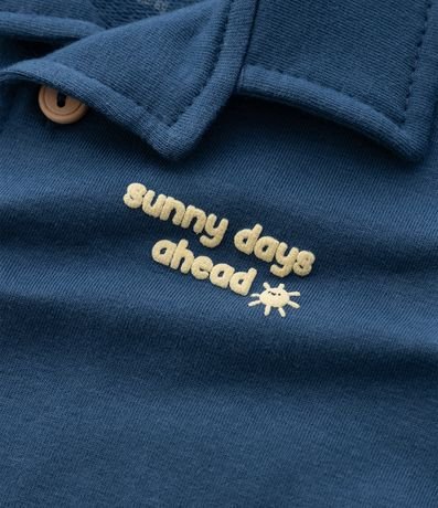 Ref: Conjunto infantil confeccionado em moletom mais sustentável, no modelo curto. Possui 02 peças: Camisa, gola lapela, manga curta, abotoamento frontal, estampa lettering "Sunny days ahead" e estampa traseira de barco a vela. Bermuda com cós elástico, bolsos frontais e sem estampa.