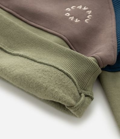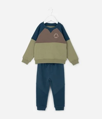 Ref: Conjunto infantil composto por blusão em moletom com felpa, recortes coloridos e detalhe em ottoman que acrescenta textura ao visual. Acompanha calça lisa com cós elástico e punhos ajustados, garantindo conforto para o dia a dia. Confeccionado em algodão certificado BCI.