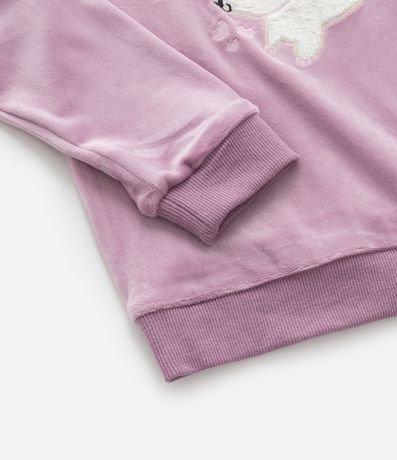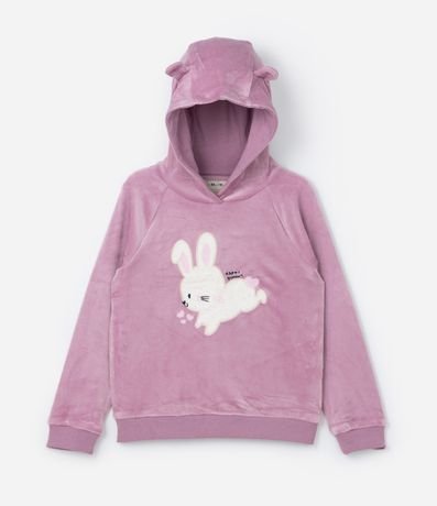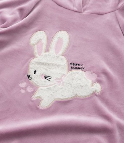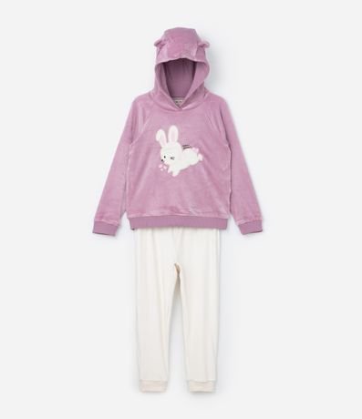 Ref: Conjunto infantil confeccionado em plush quentinho, com casaco e calça. Casaco fechado com capuz, mangas longas e bordado de coelhinha, e calça com amarração no cós.
