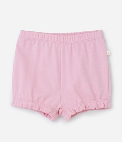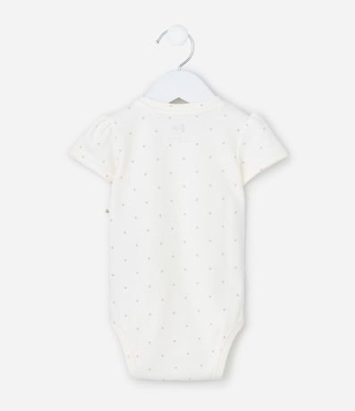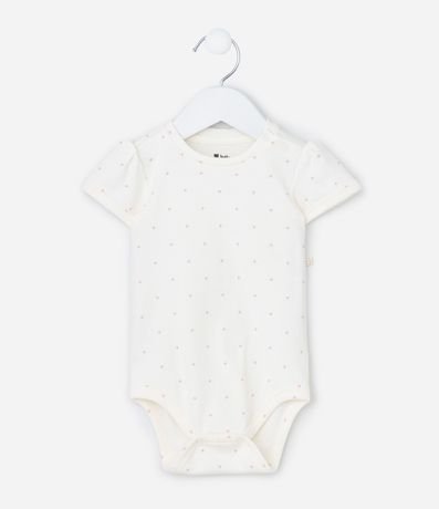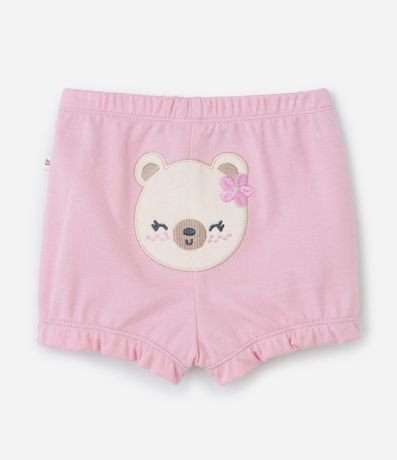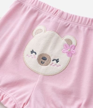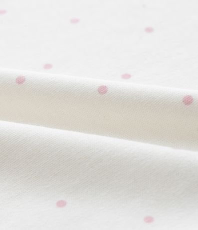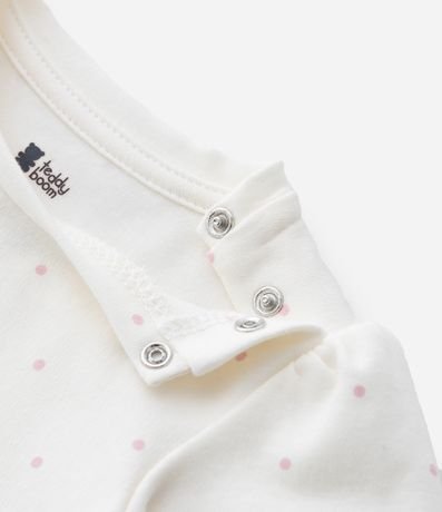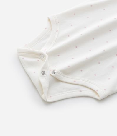 Conjunto infantil para bebês, composto por 02 peças: body e bermuda. Confeccionados em suedine mais sustentável, o conjunto possui body, gola redonda, abotoamento, manga curta, estampa poá e fechamento entrepernas. Bermuda, cós elástico, bordado de ursinha e elástico na barra.