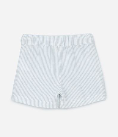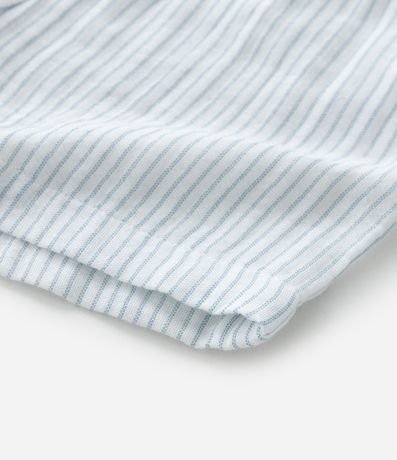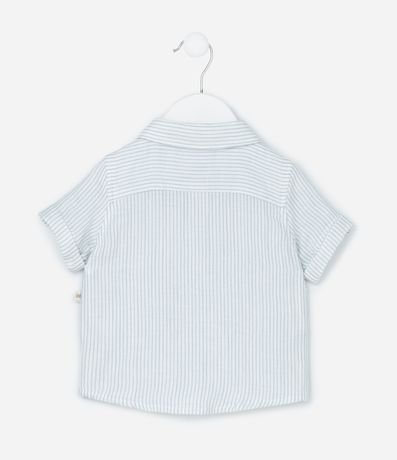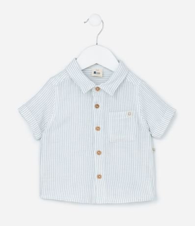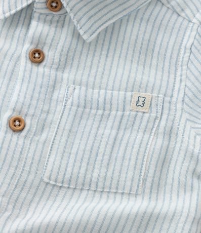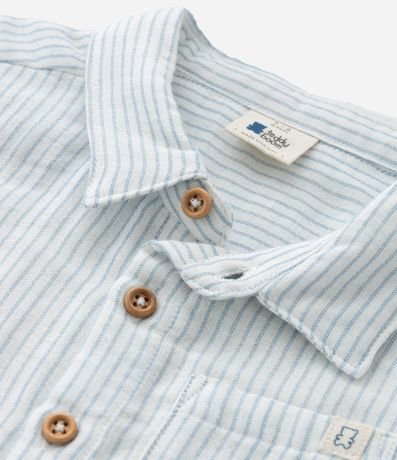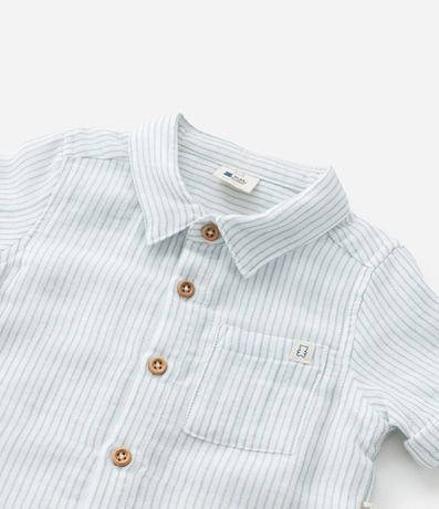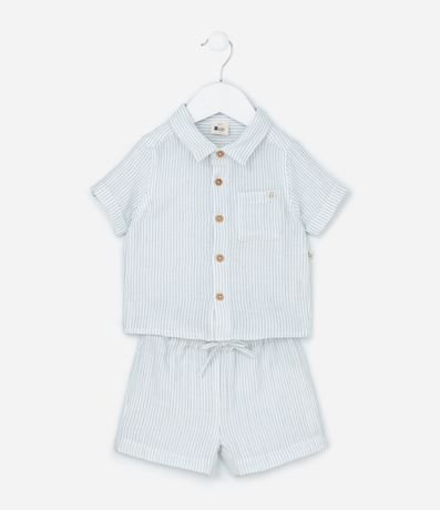 Ref: Conjunto infantil confeccionado em tricoline mais sustentável, no modelo curto. Possui camisa com gola colarinho, manga curta, abotoamento contrastante, bolsinho e bermuda com cós elástico e cordão para amarração. Ambos com estampa de listras.