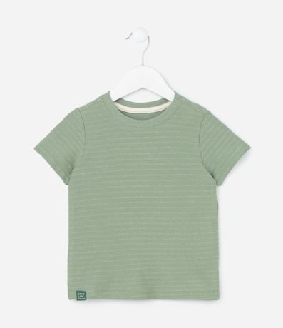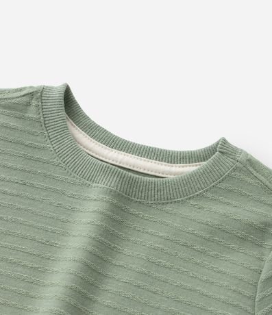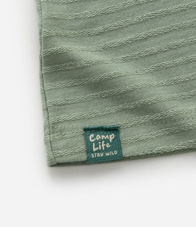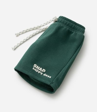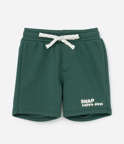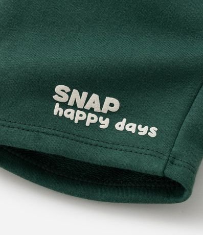 Ref: Conjuntinho infantil confeccionado em algodão, com gola redonda, manga curta, textura e bermuda com amarração no cós e lettering "Snap happy days".