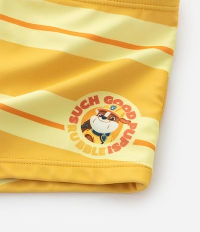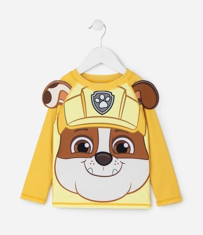 Ref: Conjunto infantil composto por camiseta manga longa com proteção UV50+, confeccionada em poliéster leve e estampa localizada do personagen Rubble da Patrulha Canina, conhecida pelo universo de trabalho em equipe e aventuras. Acompanha sunga com forro interno e cós ajustável.
