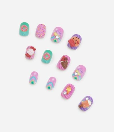 Conjunto Infantil de Unhas Postiças 3D com Anel Sweet Candy Alchemia