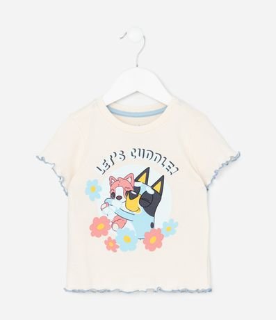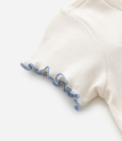 Conjunto de pijama infantil composto por blusa de mangas curtas e shortinho. Detalhes em frufru e estamparia de lettering, cães fofos e flores. Este produto possui material mais sustentável em sua composição, sendo ambientalmente mais responsável.