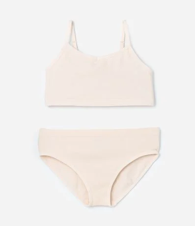 Ref: Conjunto infantil, 02 peças, sutiã e calcinha, sem estampa, canelado, sem costura e confeccionados em poliamida.
