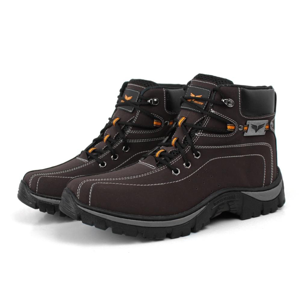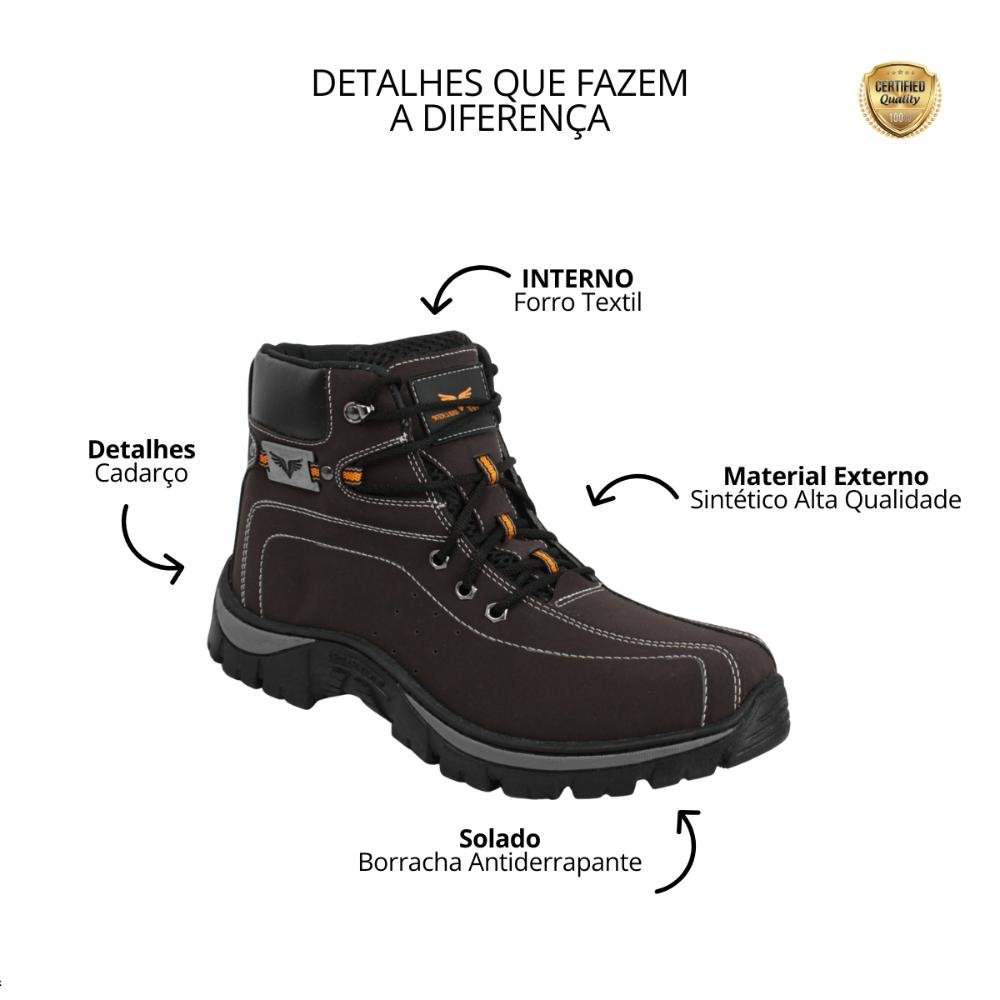 Ref: O Coturno Adventure Masculino Logo é a escolha definitiva para quem busca uma estética imponente aliada à máxima resistência e ao conforto necessário para encarar qualquer desafio. Construído com materiais sintéticos de alta gramatura e reforços estruturais, este modelo se destaca pelo design robusto que exibe o logo da marca em evidência, conferindo um toque de autenticidade e estilo aventureiro ao visual. Seu interior é totalmente forrado e acolchoado, trabalhando em conjunto com uma palmilha de absorção de impacto para garantir bem-estar prolongado, enquanto o fechamento em cadarço com passadores reforçados permite um ajuste firme e seguro ao tornozelo. O solado tratorado em borracha antiderrapante oferece tração superior em terrenos irregulares e superfícies úmidas, unindo a durabilidade de um calçado tático à versatilidade do uso urbano, sendo a peça ideal para homens que não abrem mão de proteção, estabilidade e uma presença marcante em cada passo.