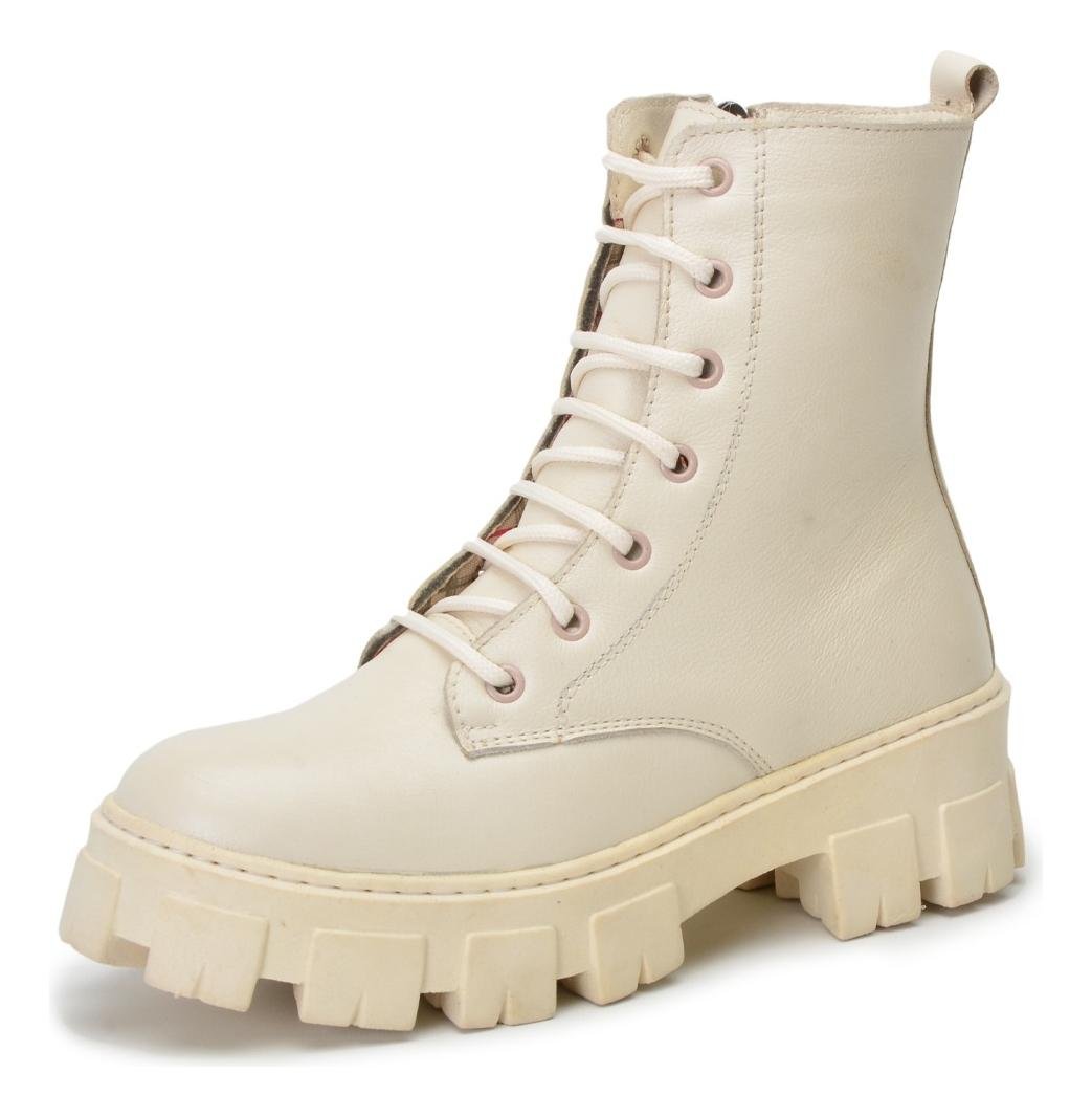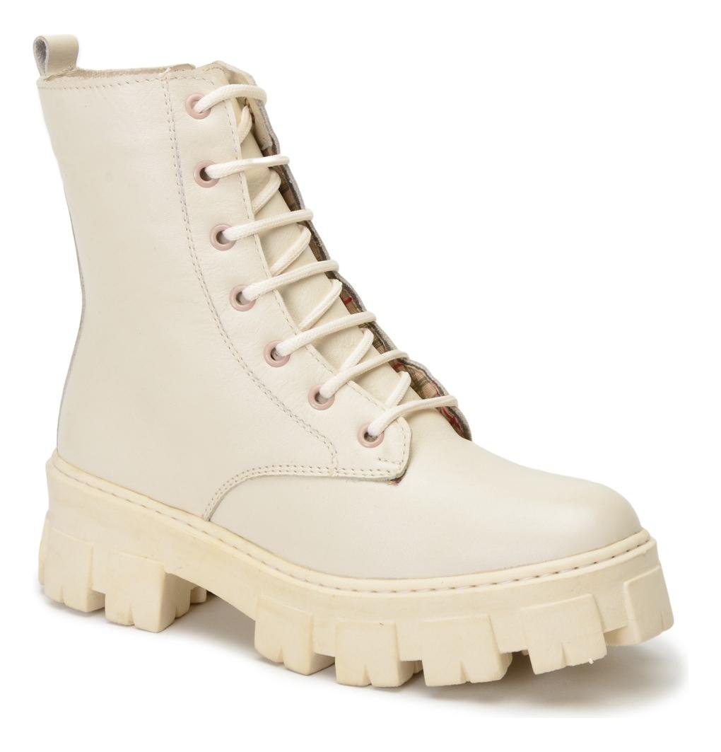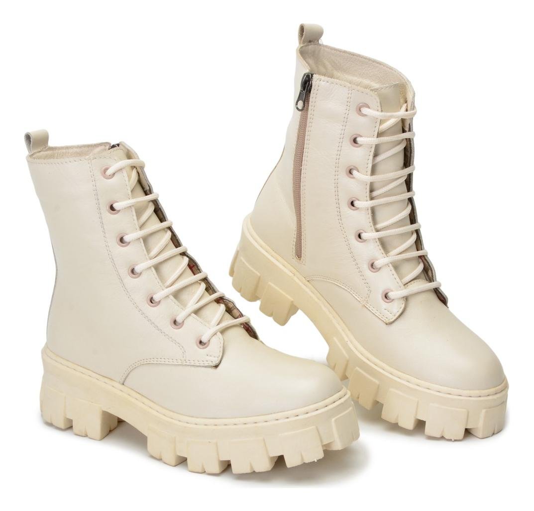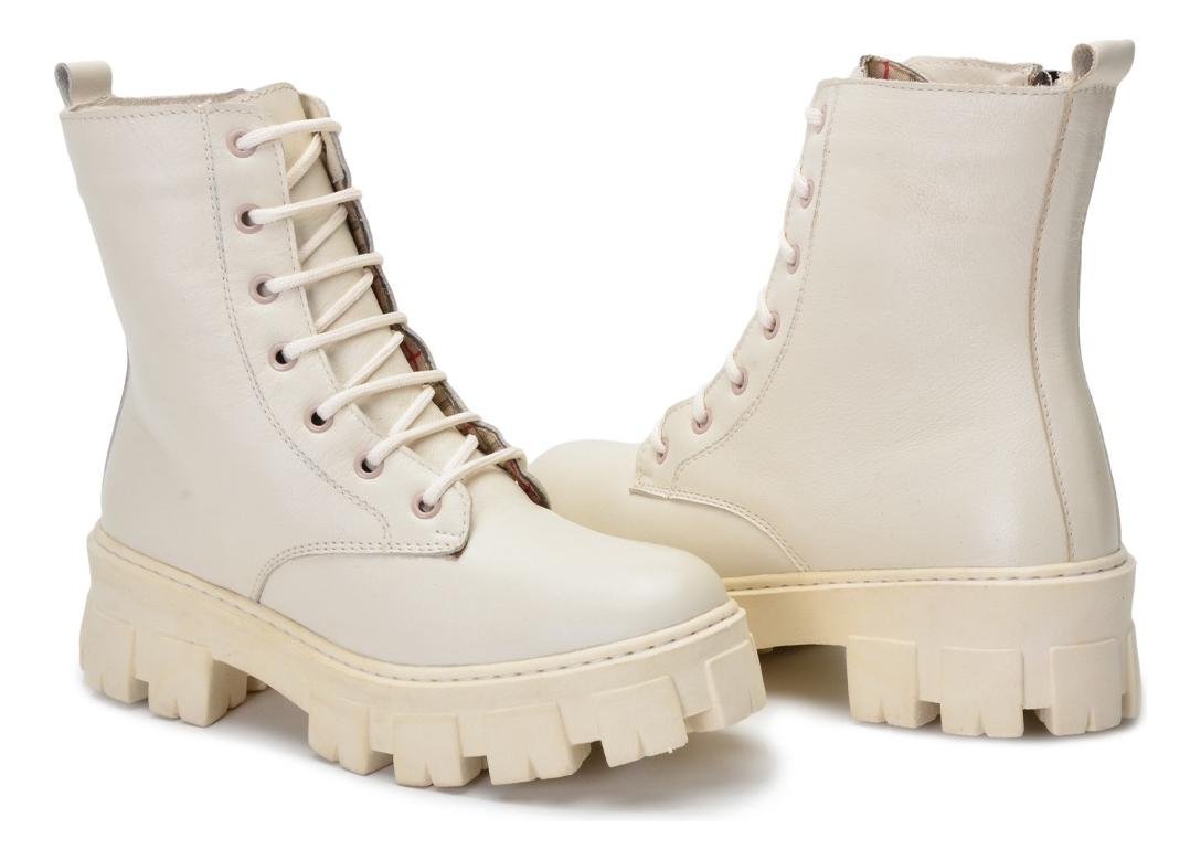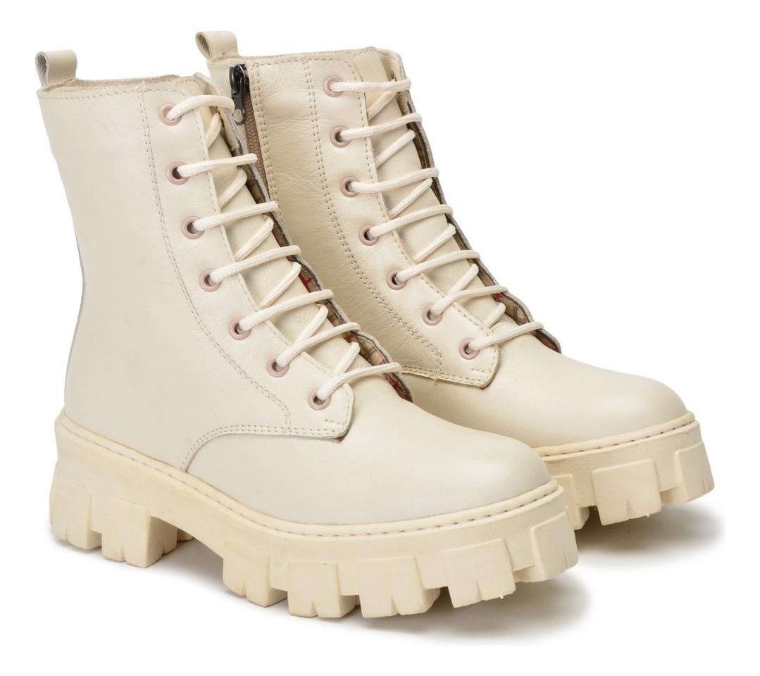 O Coturno Feminino em Couro e a escolha perfeita para quem busca estilo, conforto e resistencia no dia a dia. Confeccionado em couro mestico de alta qualidade, proporciona durabilidade e visual moderno.  Cabedal: Couro Mestico Preto e Marfim  Forro: Em Couro para maior conforto  Fechamento: Cadarco frontal e ziper na lateral interna, pratico e seguro  Solado: Borracha robusta com excelente aderencia  Palmilha: GEL macio que garante conforto prolongado  Ideal para compor looks urbanos, casuais ou despojados, unindo versatilidade com um design moderno e robusto.