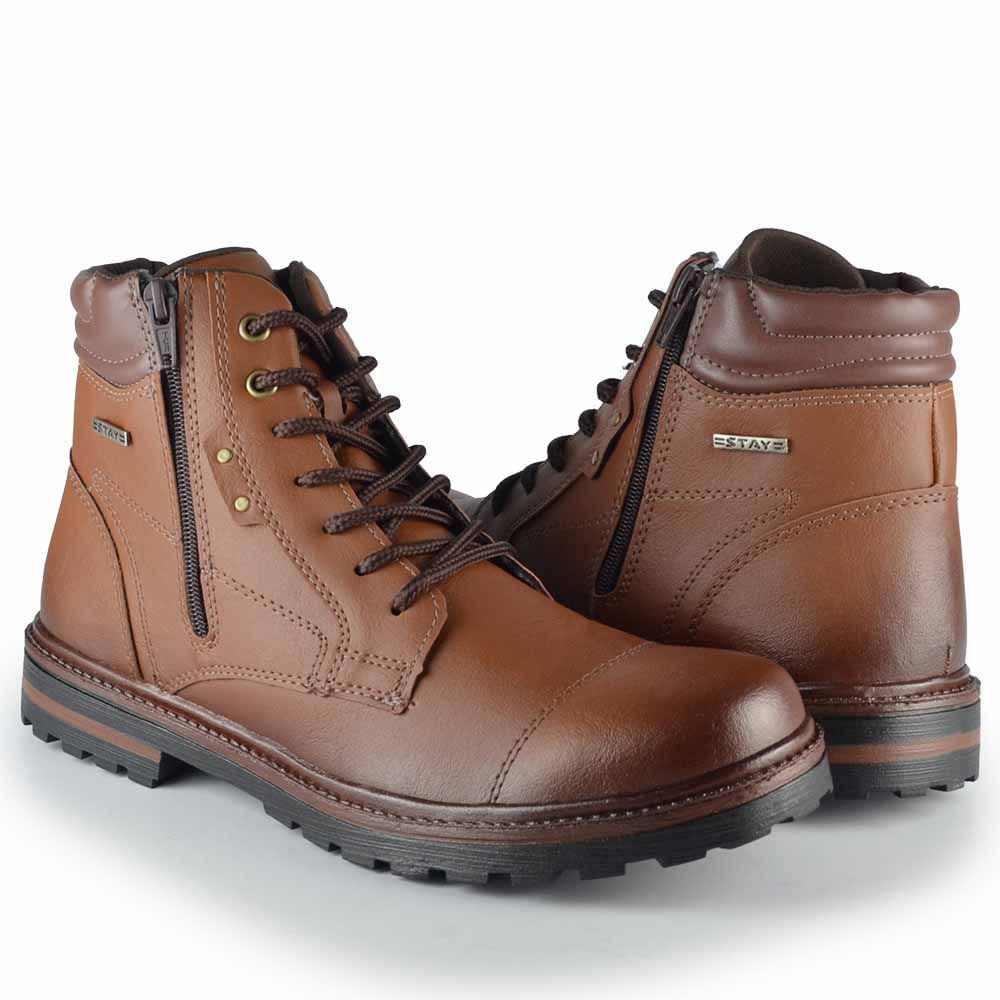 Coturno Masculino Stay, confeccionado em material sintético com amarração em cadarço e fechamento em zíper, esse coturno pode ser usado em ocasiões casuais, dia a dia, passeios, lazer, entre outros.