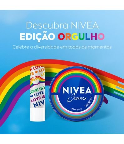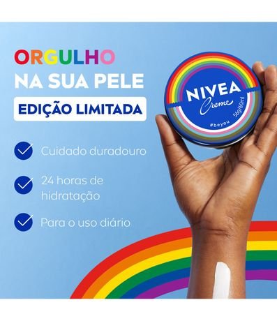 Ref: NIVEA Creme Hidratante Lata Orgulho é uma edição especial do creme mais icônico do mundo, celebrando a diversidade e o amor em todas as formas. Com um design exclusivo, simboliza um compromisso visível contra o ódio e a intolerância.