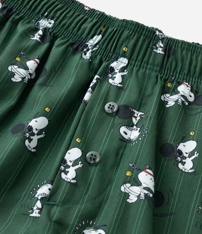 Ref: Cueca samba-canção confeccionada em tricoline de algodão, com estampa divertida do personagem Snoopy em tema esportivo. Possui cós com elástico confortável e abertura frontal com botões. Confeccionado em algodão de certificado BCI.