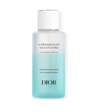 Elimine a maquiagem e as impurezas com suavidade e eficácia com Le Démaquillant Yeux et Lèvres, o demaquilante Dior com uma fórmula bifásica que apazigua a sensação de desconforto e hidrata a pele. Antes de aplicar nas pálpebras, no contorno dos olhos e nos lábios, agite bem o frasco para misturar a fase aquosa, infundida com extrato de nymphéa purificante e água floral de centáurea azul, e a fase oleosa do demaquilante.