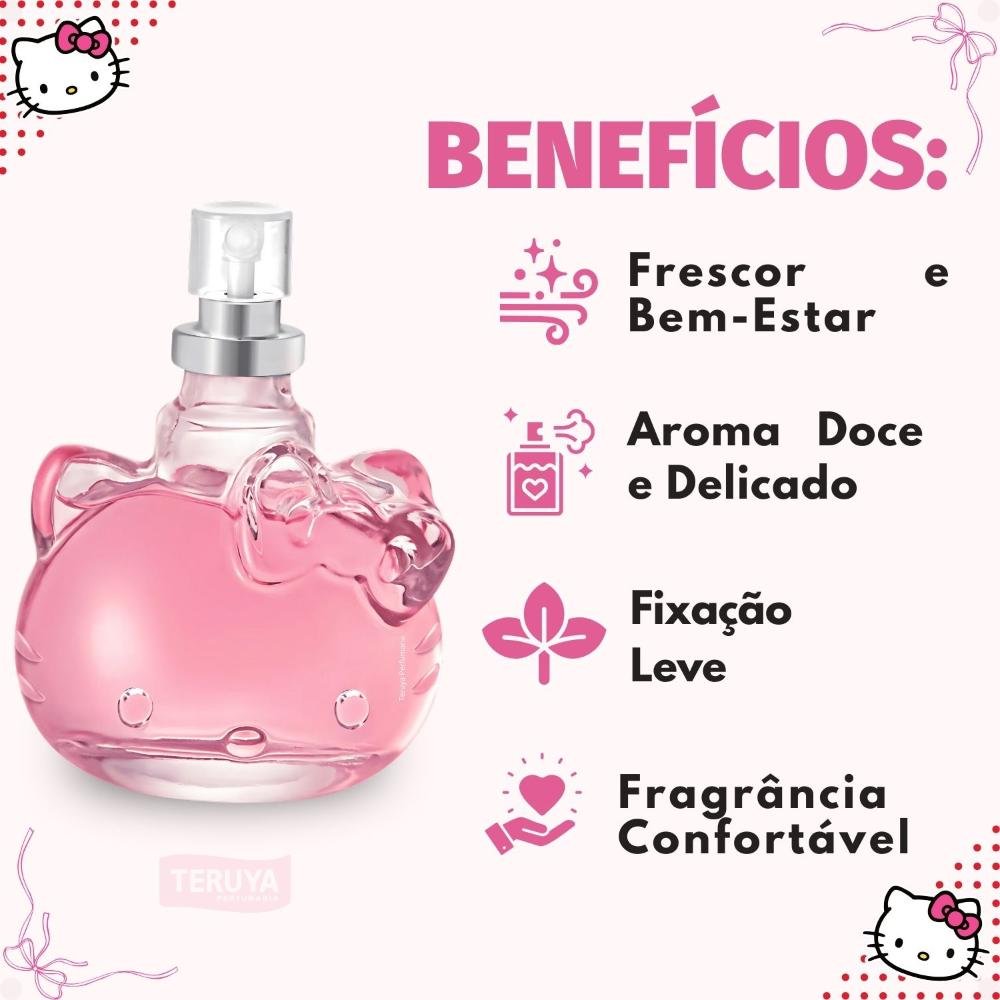 Fragrância exclusiva inspirada na adorada personagem Hello Kitty, um ícone mundialmente reconhecido por sua fofura e encanto.