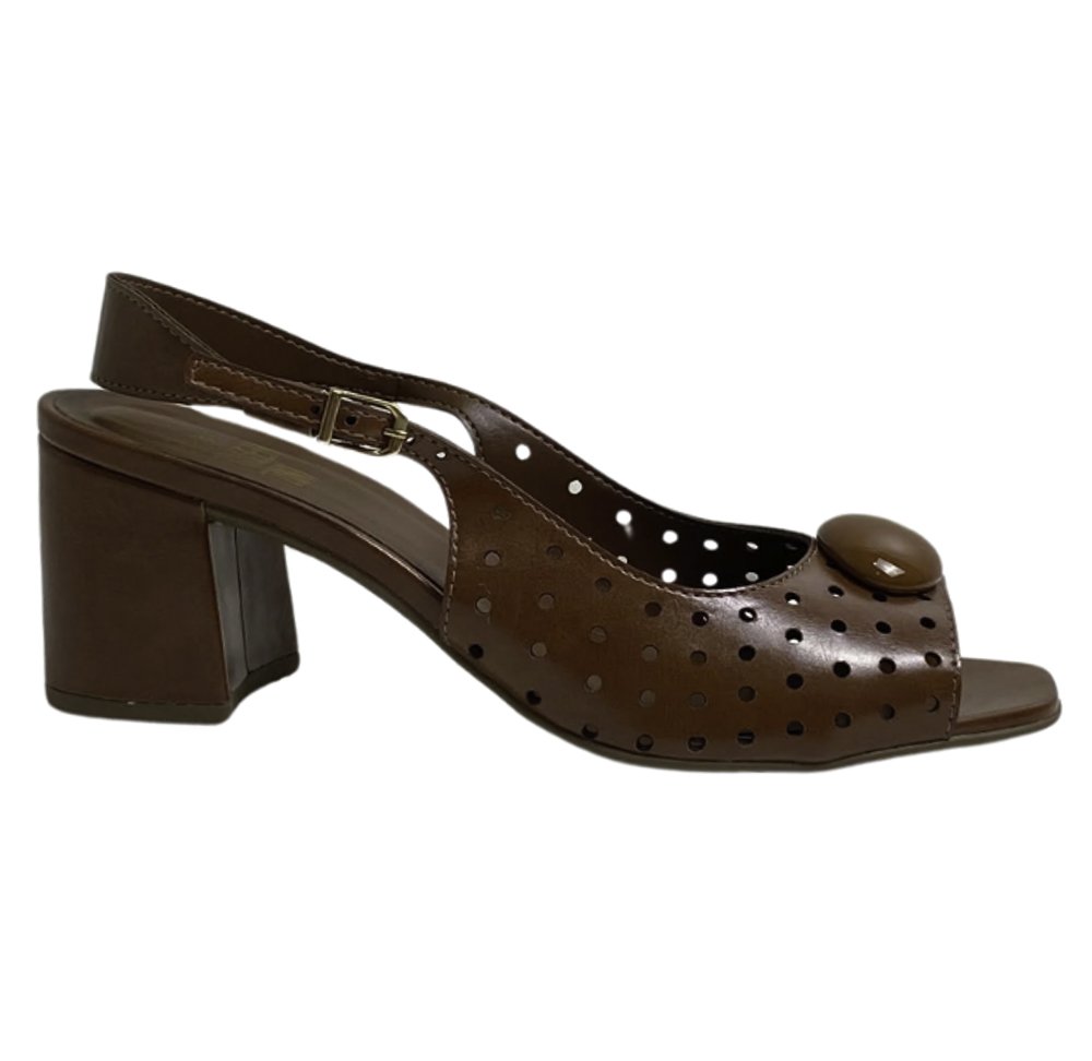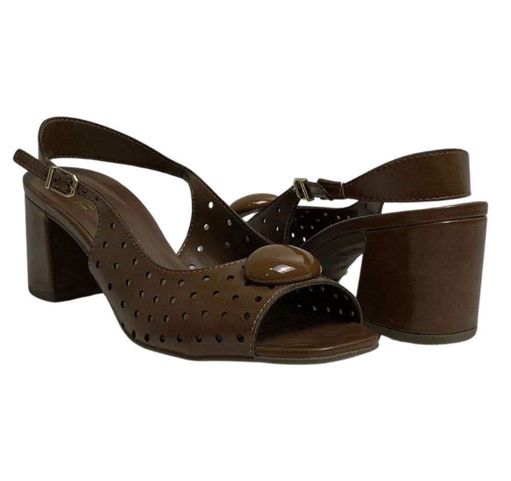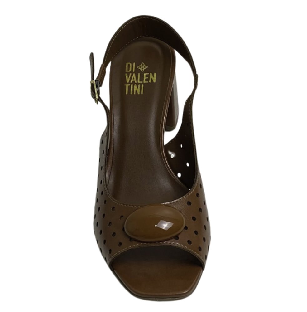 A sandália Di Valentini é sinônimo de estilo e delicadeza. Seu cabedal todo trabalhado traz um visual marcante, com detalhe charmoso que valoriza o design. O salto bloco garante elegância com conforto, ideal para compor produções modernas.